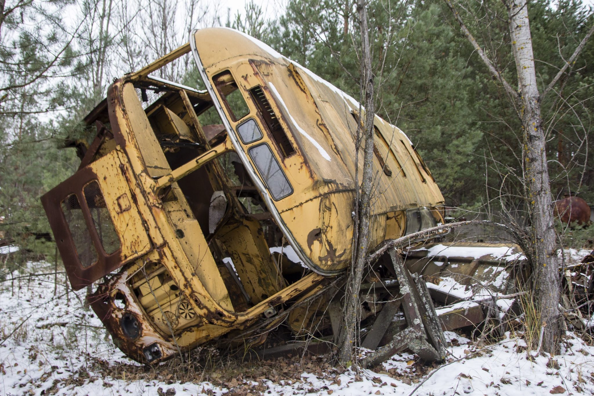 Ještě před večeří průvodce riskuje a bere nás i na místa, kam by oficiálně neměl. Za tichého souhlasu dozimetru tak můžeme obhlédnout vraky lodí navždy zaparkované u pobřeží řeky Pripjať. Již klasickou zastávkou je malý hřbitov techniky použité k odstraňování prvních a nejhorších následků katastrofy – rozmetaného radioaktivního paliva. Spousta podivných vozítek vypadá jako dětské hračky. Jsou totiž na dálkové ovládání a některá z nich pocházejí ze sovětského lunárního programu.